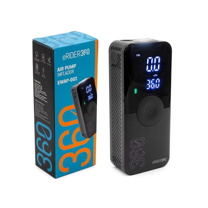 The eRider360 Premium Pump is a powerful cordless portable air compressor designed for cars, bicycles, e-scooters, motorcycles, and sports equipment. Compact and easy to carry, it is perfect for travel, daily use, and emergency situations.
